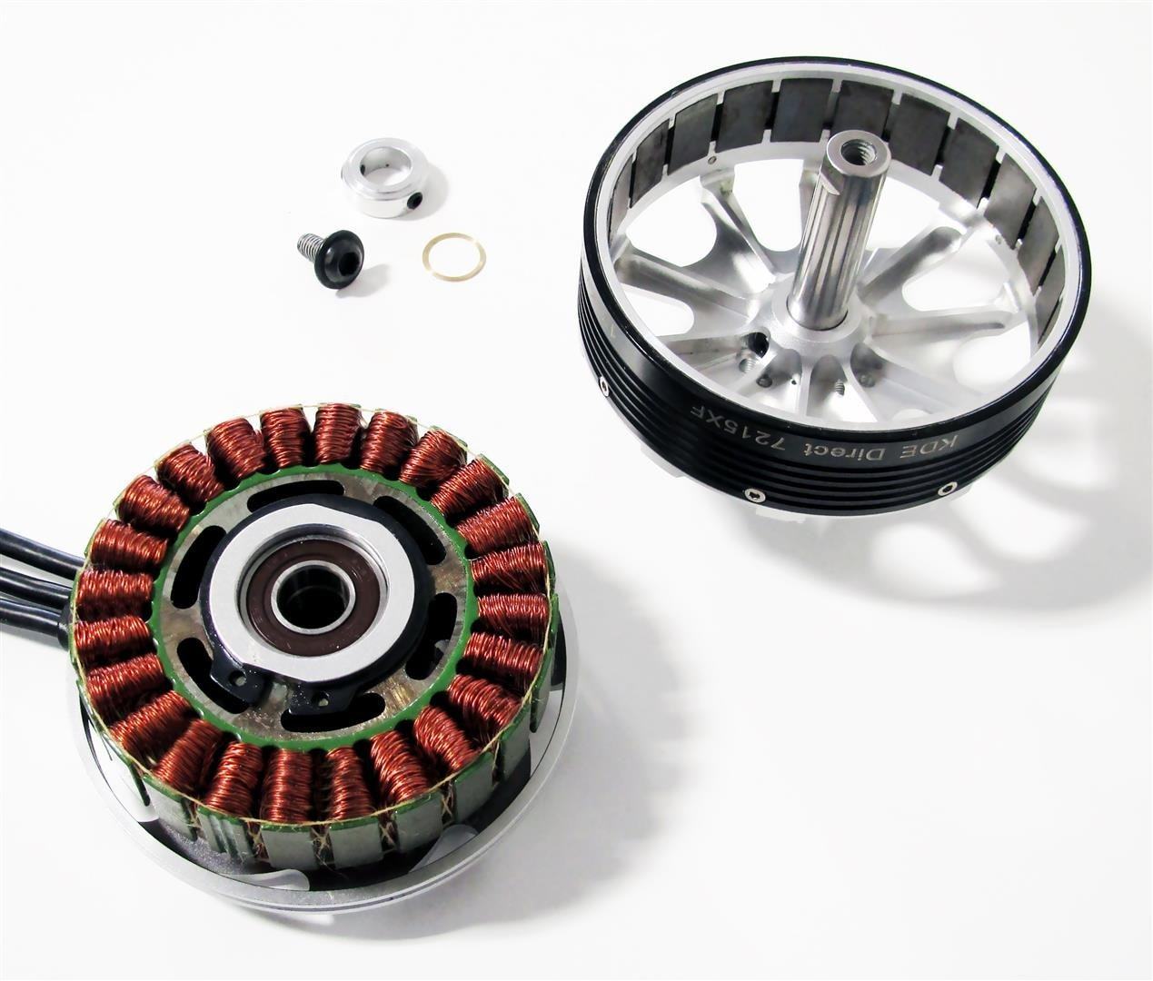 The new KDE Direct 7215XF-135 Multi-Rotor Brushless Motor is an extremely efficient and powerful motor for numerous multi-rotor and UAS heavy-lift applications, and was designed to bring high-quality and vibration-free motors to the market. The motors are designed with performance and durability in-mind, with features unseen in the current market: (1) high-grade, 200°C continuous high-temperature solid-core copper windings for failure-free operation in extreme-climates, (2) Japanese-built, 0.2 mm silicon-steel stator laminations and Kevlar tie-wraps for high-efficiency performance, and (3) triple-bearing supported, ABEC-7 bearings for maintenance-free and worry-free flying for hundreds of hours. These are just a few of the advantages built-in to these motors, and every detail of the motors was scrutinized to produce the absolute best available; for a wide-range of flight applications.